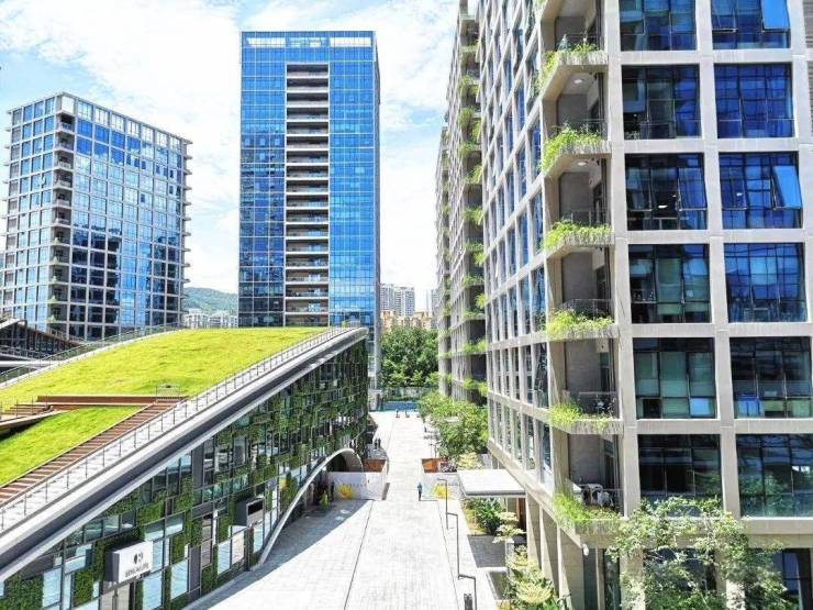 街区商业-开创性地将绿色坡地建造于建筑之上,贡献“屋顶上漫步,草地下购物”奇妙体验