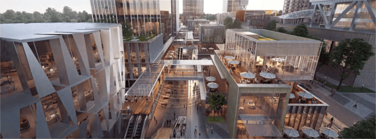 4、空中连廊系统:实现商业配套无缝接驳,达成资源互联互通与配套共享