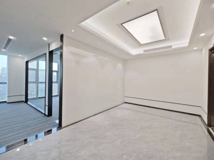 办公区域,面积约 3.3 万㎡ 标准层:面积约 1700㎡,层高 4.15 米(吊顶后净高 2.8 米) 大堂:挑高 6 米,豪华装修 实用率:约 70% 外立面:LOW-E 玻璃幕墙,现代简约设计
