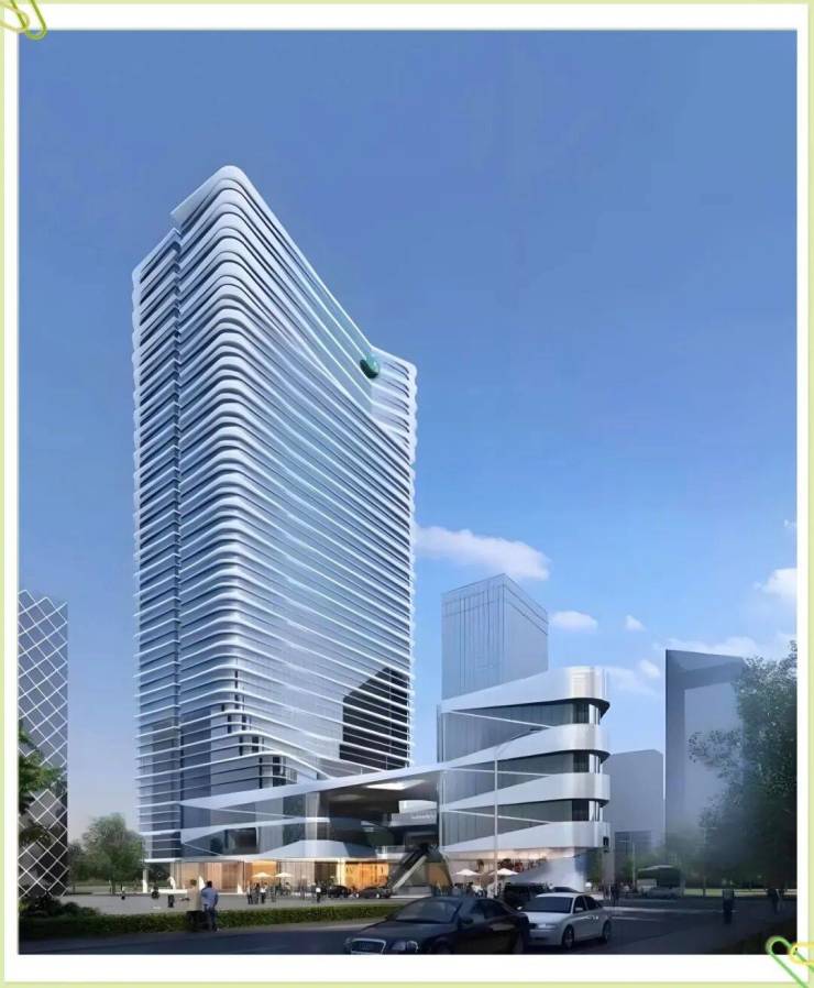 大厦总高 109.95 米,地上 23 层、地下 5 层。 -1 至 4 层为商业区,5 至 23 层为商务办公区。采用国际绿色建筑标准,以流线型外观搭配玻璃幕墙,兼具美观与实用。办公空间开阔,面积选择多样,满足不同企业需求,每层还配备公共会议室、休闲吧台,13 层设有健身房。