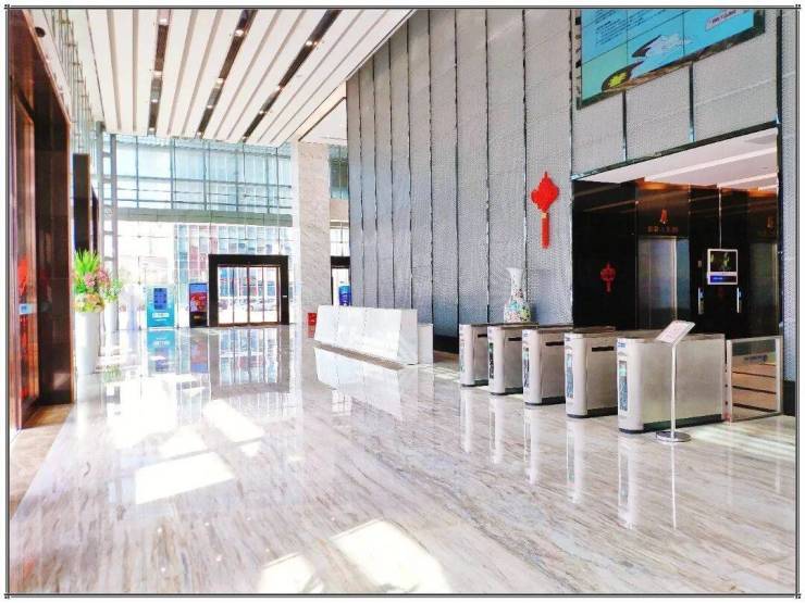 设施设备先进,21 台客梯高低区划分;办公区东芝 VRV 空调可独立控温、24 小时使用;双回路供电搭配发电机保障用电稳定;智能门禁、环境监测系统与高速光纤,兼顾安全与高效办公。