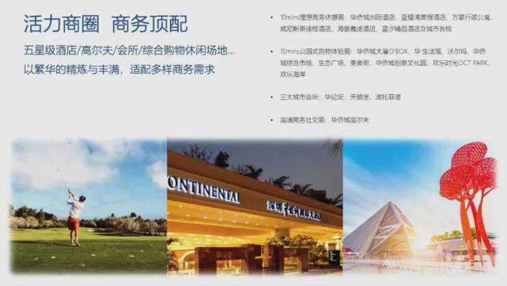• 10mins理想商务休憩圈:华侨城洲际酒店、蓝楹湾度假酒店、万豪行政公寓、