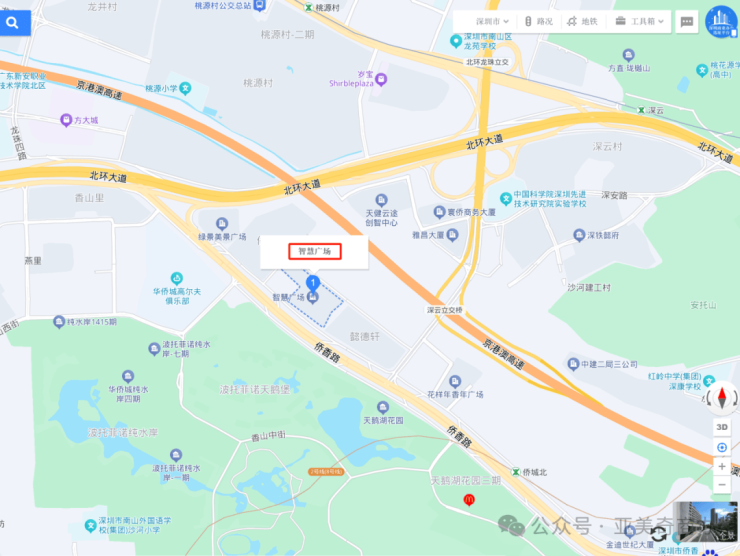 深圳华侨城智慧广场坐落于南山区华侨城片区核心位置,侨香路与深云路交界处西北角,尽享区域成熟配套与优质生态环境。这里紧邻塘朗山,远眺深圳湾,兼得山水之利,是城市中难得的商务佳境。