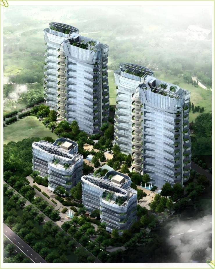 建筑设计独具匠心,以 “生态、低碳” 为理念。四栋建筑采用错位式排列,轮廓线北高南低,既有利于日照、采光和通风,又将内景观环绕四周,实现内外景观融合。3.7 的容积率与 35% 的覆盖率,规划出近 12000 平方米的立体园林,绿化率达 40%,超宽楼间距保证了办公室内开阔的视野。