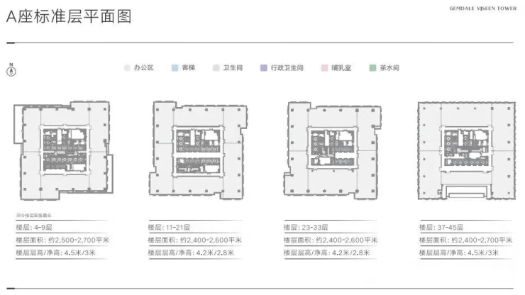 标准层建筑面积:A/B座2400㎡-2700㎡,C座1800㎡-1900㎡(整栋总建筑面积约1.2万平方米,仅限整栋出租)