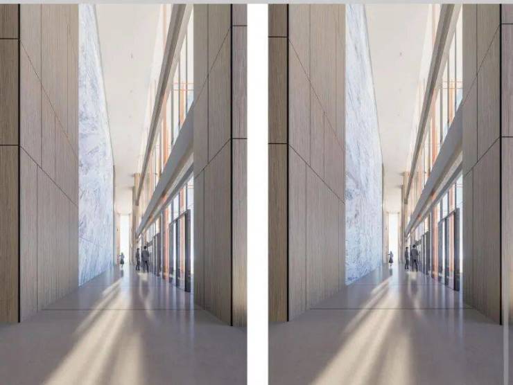 项目创新性采用“每11层布设一处空中花园”的垂直布局方案,共规划4处花园,单处挑高可达10.2m,所有电梯均可直达。该空间将自然场景与多元功能深度融合,涵盖非正式办公、社交互动、休闲放松等使用场景,为员工打造兼具实用性与舒适度的多功能自然生态空间,既能够舒缓员工视觉疲劳、安抚工作状态下的紧绷情绪,也能让员工获得充分的归属感与舒适感。