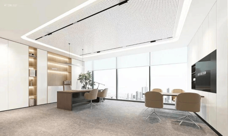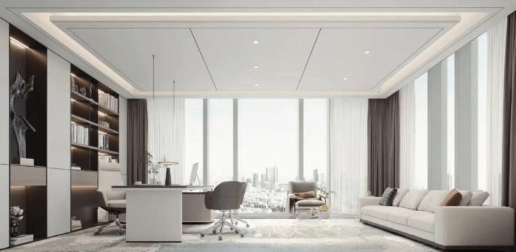 玻璃幕墙、4.5米层高、户型方正(边柱设计)、24小时中央空调、标配架空地板、茶水间和豪华公区装修,满足高品质甲级办公体验。