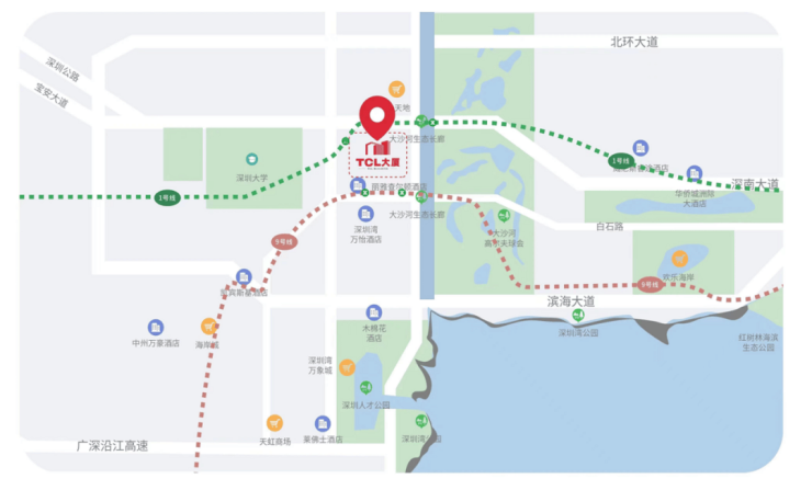 TCL大厦配置大型会议室,周边涵盖大型购物中心华润万象天地、餐饮酒楼、银行网点、健身场馆、高端酒店、体检中心及各类零售餐饮业态,商业配套成熟完备。