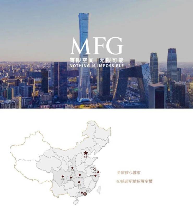 全国资源联动 :入驻即可享受MFG在全国 10个核心城市 、 30余个超甲级写字楼 的功能空间,包括300+商务中心、450+会议室、50+路演厅
