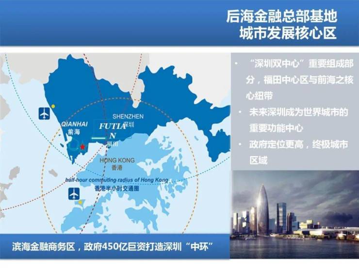 项目地处后海金融总部基地,“深圳双中心”重要组成部分,福田中心区与前海之核心纽带,未来深圳成为世界城市的重要功能中心,政府定位更高,终极城市区域。