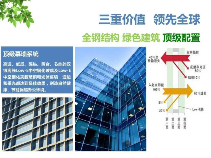 高效智能选梯系统、顶级幕墙系统,不凡气质,构建企业层峰形象。