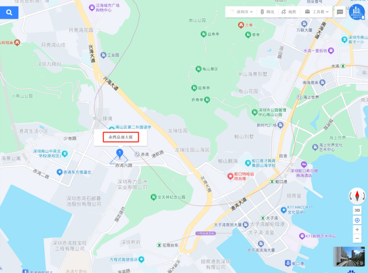 · 地址:深圳市南山区蛇口自贸兴海大道与赤湾六路交汇处