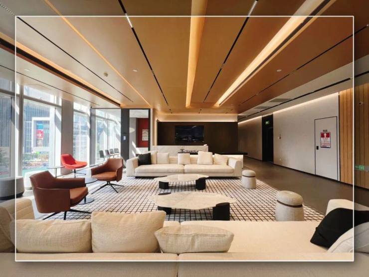 大厦由伍兹贝格操刀设计,塔楼共 33 层,搭配 3 层商业裙楼。其设计秉持以人为本理念,简洁大方的塔楼与环境和谐共生。独特的弧形塔冠、优雅比例,以及不锈钢与玻璃结合的围合构筑,尽显精致。外立面采用高品质不锈钢,随日照变化呈现光影交错效果。塔冠将功能与美学融合,屋顶花园增添自然氛围。