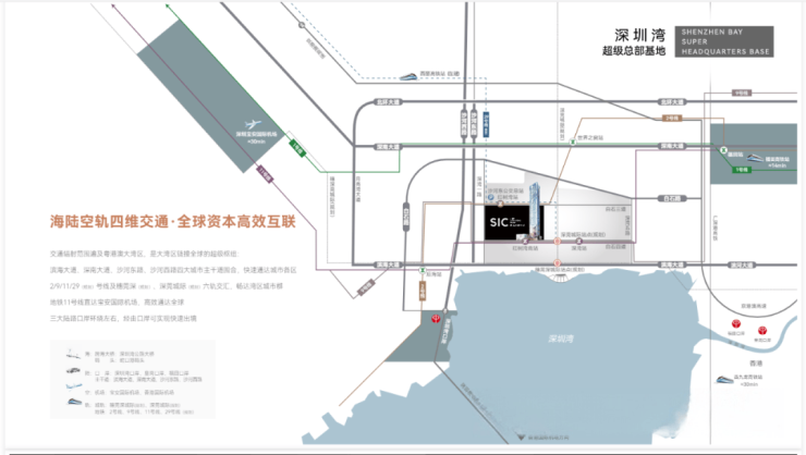 滨海大道、深南大道、沙河东路、沙河西路四大城市主干道围合,快速通达城市各区,