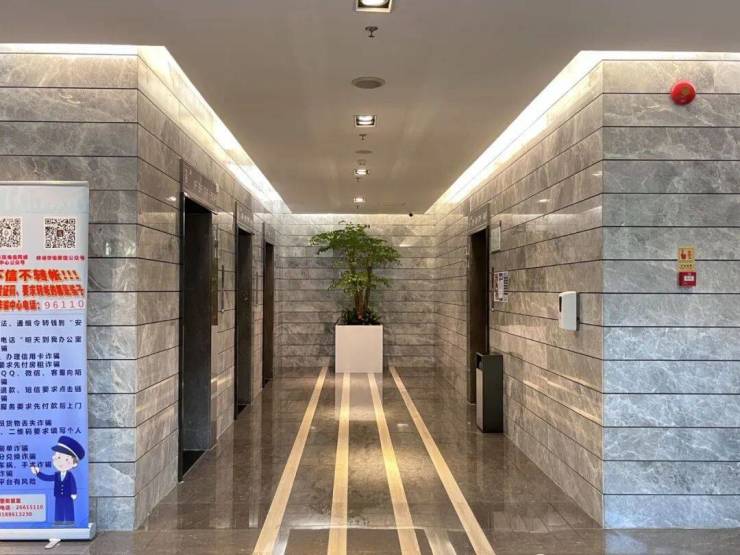 形象优越:9.4米超高挑空双大堂,大理石材装修,楼体整体以真空玻璃及铝合金装饰包裹;