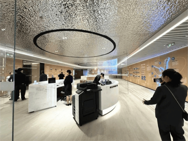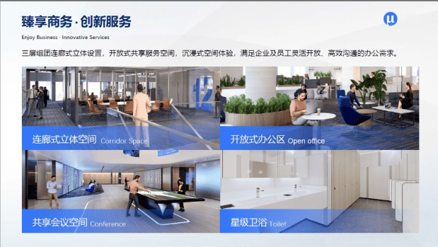 内部配套:挑高大堂、商业服务区域、健身中心、员工餐厅、会议场地等设施一应俱全;