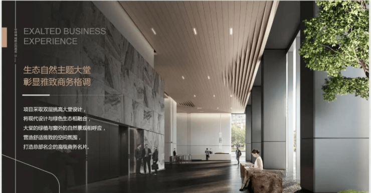 CCD操刀设计,双层挑高大堂,将现代简约风格设计与绿色生态相融合,彰显国际商务气度