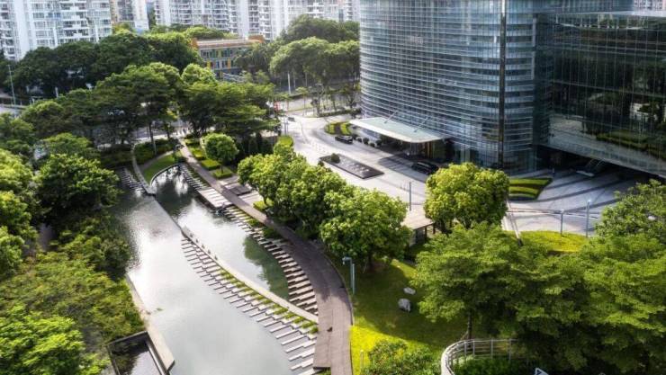 建筑南侧的主体绿化景观以水景为核心元素,既延续了商业文化中心区的整体规划,也与东侧深圳湾的海面形成呼应。北侧则设置了城市步行景观广场,与市政人行天桥无缝衔接,如同一座生态绿洲,将商务空间与城市生活自然连接。近20,000㎡的南北双广场,为入驻企业营造了和谐绿色的办公环境,在繁华都市中心打造出一片难得的生态休憩之地。