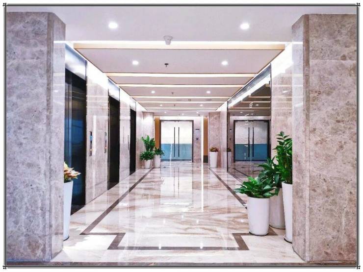 设施设备先进,21 台客梯高低区划分;办公区东芝 VRV 空调可独立控温、24 小时使用;双回路供电搭配发电机保障用电稳定;智能门禁、环境监测系统与高速光纤,兼顾安全与高效办公。
