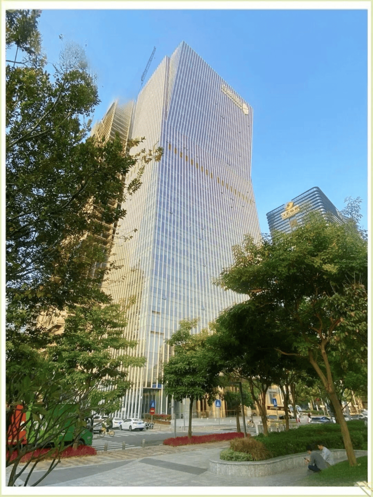 外观设计,以 130.15 米的高度耸立于城市天际线,是新百丽鞋业的总部所在地。大厦外立面设计独特,明朗的块面相互交错,形成百变之势,营造出雅致、舒适的空间氛围。