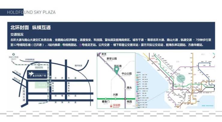 1、位于北环大道与南山大道交汇处西北角,坐拥南山经济腹地,连接宝安、科技园、留仙洞及前海商务区,毗邻北环大道、南山大道,快速通达深圳各区,
